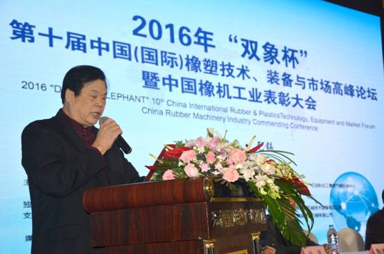 本次大会开幕布式全国橡塑机械信息中心李玱玱秘书长主持,在主席台座的有中国石油和化工勘察设计协会齐福海副会长、全国橡胶塑料设计技术中心郑玉胜主任、中国橡胶工业协会原会长鞠洪振先生、中国石油和化学工业联合会赵彩东先生、中国化工信息协会刘宇副秘书长、论坛协办方江苏双象集团董事长唐炳泉先生以及中国化工装备总公司橡胶机械专业委员会名誉主任李东平先生。郑玉胜主任致开幕词。他首先代表本届论坛的主办方对各位参会代表给予我们的大力支持表示衷心的感谢!他指出:“这次论坛的主题是:创新发展、合作共赢、转型升级、绿色智造。中心特邀了21位海内外专家围绕“转型升级、技术创新、绿色制造、品牌打造、国际合作”等方面进行学术交流和新品介绍。这些专题是中心对行业共同热点、难点和发展而设计的,为开展创新、创业、创投探讨发展出路,具有一定的引领性和前瞻性。本届论坛召开在“十三五”开局之年,行业正处于创新、升级、转型的关键时期。论坛涉及很多接地气的内容,希望大家珍惜这次难得的交流机会开好本届论坛。