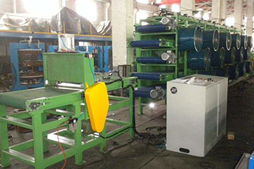 用途及特点 主要用作密炼机的下辅机,与密炼机、挤出压片机、开炼机配套使用,将胶片涂隔离剂、冷…